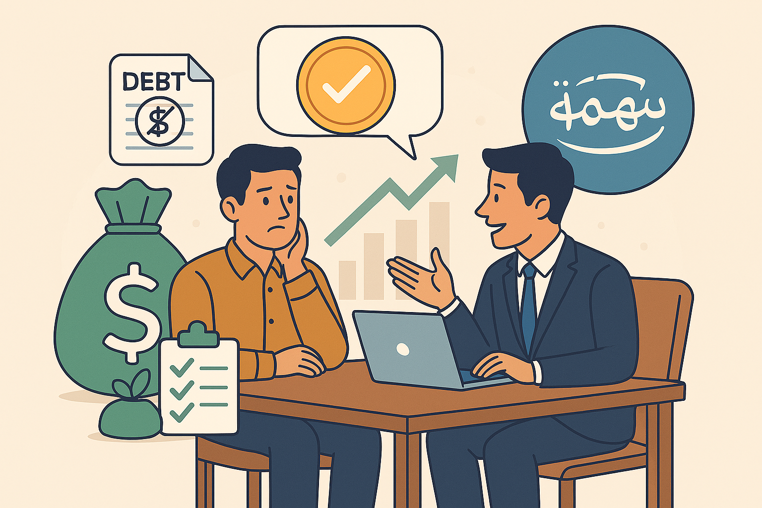 هل تشعر بضغط الأقساط الشهرية؟ هل ترغب في الحصول على تمويل جديد بنسبة مرابحة أقل ولكن مديونيتك الحالية تمنعك؟ في مكتب أبو سلمان، نقدم لك الحل الأمثل والأسره لسداد قروضك القديمة في بنك